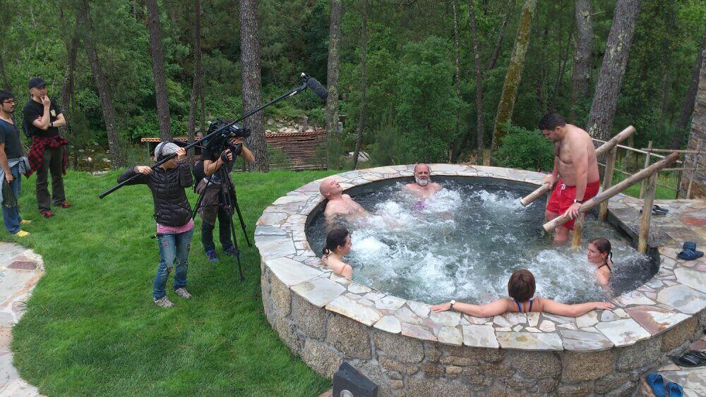 El equipo de televisión japonesa haciendo un reportaje en Ourense hace una parada en